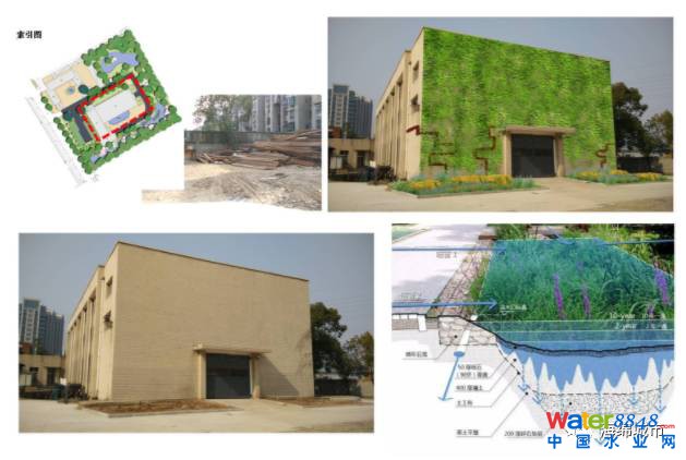辦公區(qū):緊鄰泵站主入口,主要功能為辦公人流集散。根據現(xiàn)有功能對活動區(qū)內的鋪裝進行改造,改為透水混凝土或透水磚。場地中央的水景保留,在外圍增加生物滯留帶,凈化入池的雨水。