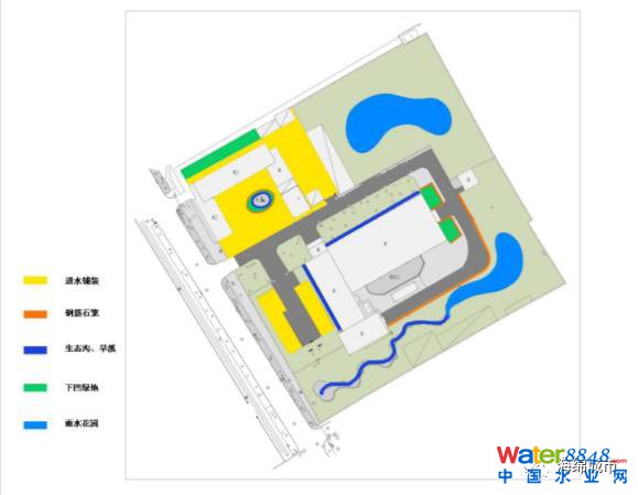 其中,高效率地利用雨水,減少水資源消耗是凸顯“海綿化”改造的重要手段,也是生態(tài)原則的重要體現(xiàn)。通過雨水利用,解決大部分的景觀用水,甚至能夠完全自給自足,實現(xiàn)對城市潔凈水資源的零消耗。在設計中,回收的雨水不僅用于水景的營造、綠地的灌溉、還用作周邊建筑的內部清潔。