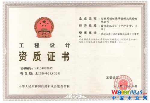 國禎環(huán)保設(shè)計研究院經(jīng)營業(yè)務(wù)范圍主要有:市政污水處理廠及配套管網(wǎng)工程咨詢和設(shè)計、工業(yè)廢水處理工程咨詢和設(shè)計、污水處理回用工程咨詢和設(shè)計、污泥處理工程咨詢和設(shè)計、河道及湖泊治理工程咨詢和設(shè)計、土壤及地下水污染評估及修復(fù)、污水處理廠各專業(yè)設(shè)計優(yōu)化等,現(xiàn)持有國家住建部環(huán)境工程(水污染防治工程)專項(xiàng)設(shè)計甲級證書、國家發(fā)改委市政公用工程(給排水)工程咨詢乙級證書。