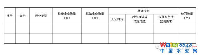 填表說明:(1)具體到企業(yè)所在縣(區(qū));(2)企業(yè)注冊名稱全稱;(3)無證排污企業(yè)填無;(4)勾選對應(yīng)的行為,可多選,無相應(yīng)行為的可不選;(5)簡要說明具體行為和采取的處罰情況。