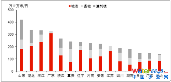 我國“十三五”城鎮(zhèn)污水處理規(guī)劃提標(biāo)改造規(guī)模前列省市