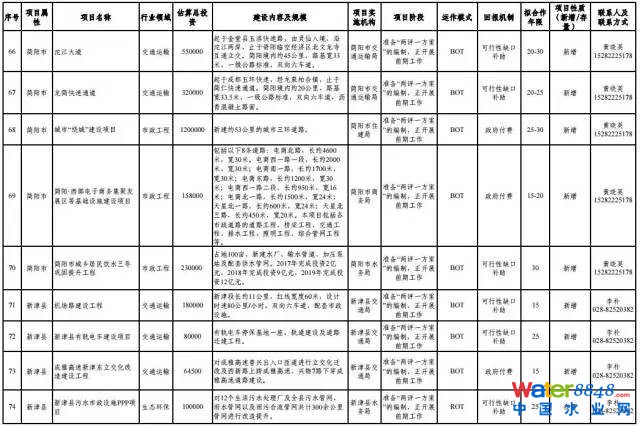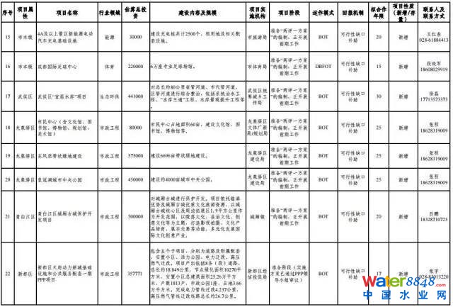 成都面向社會公布78個PPP項目 總投資3208億元(附名單)