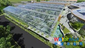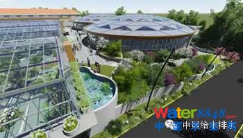 (7)建筑設(shè)施與城市景觀的自然結(jié)合,位于溫室內(nèi)的植物園式設(shè)施替代了水泥建筑群式的傳統(tǒng)污水處理廠,充分體現(xiàn)大自然魅力的水景圓完美地融入到城市的全景之內(nèi)。