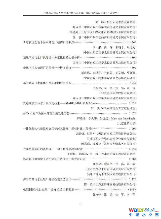 465頁(yè)內(nèi)文,48位專家報(bào)告:中國(guó)給水排水 2017年中國(guó)污水處理廠提標(biāo)改造高級(jí)研討會(huì) 論文集目次