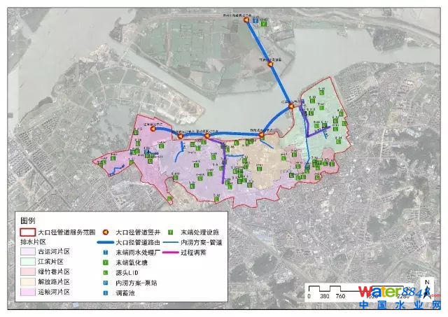 針對(duì)鎮(zhèn)江城市老城區(qū)雨污合流和CSO溢流問題、初期雨水污染問題和河道治理問題的現(xiàn)狀需求,加上海綿城市年徑流總量控制率、年徑流污染控制率和內(nèi)澇防治的三大目標(biāo)要求,源頭綠色LID充分建設(shè)仍然滿足不了水質(zhì)水量耦合目標(biāo),中心提出沿金山湖多功能大口徑管道系統(tǒng)方案,對(duì)現(xiàn)狀管網(wǎng)灰色系統(tǒng)進(jìn)行有效補(bǔ)充,完成區(qū)域海綿城市建設(shè)目標(biāo),建設(shè)科學(xué)合理完善的海綿城市工程體系和聯(lián)合運(yùn)行調(diào)度體系,實(shí)現(xiàn)海綿城市建設(shè)的系統(tǒng)集成創(chuàng)新。
