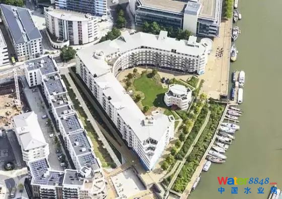 可持續(xù)城市排水: 可持續(xù)城市排水將雨水從建筑屋頂導(dǎo)流至港口,通過(guò)一系列管道、渠道和小溪,還可以灌溉種植。浮動(dòng)的海港邊緣蘆葦在水進(jìn)入港口之前過(guò)濾雨水和地表水。蘆葦也創(chuàng)造了寶貴的棲息地,并提供一個(gè)有吸引力的水邊設(shè)置。其他棲息地包括面對(duì)中央廣場(chǎng)的綠墻。