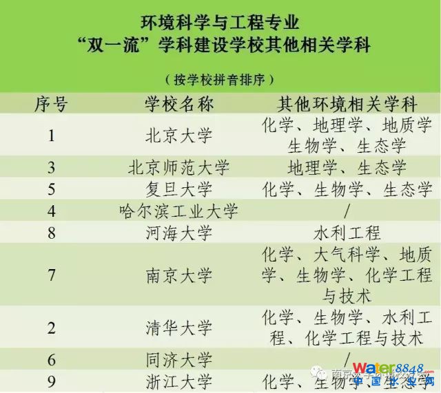 “雙一流”名單中包括42所一流大學建設高校和95所一流學科建設高校,其中,僅有北大、北師大、復旦、哈工大、河海、南大、清華、同濟、浙大9所高校的環(huán)境工程與科學專業(yè)入選一流學科建設。