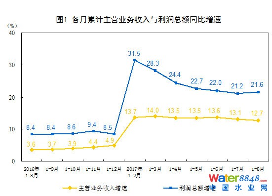 2017年1-8月份全國規(guī)模以上工業(yè)企業(yè)利潤總額同比增長21.6%
