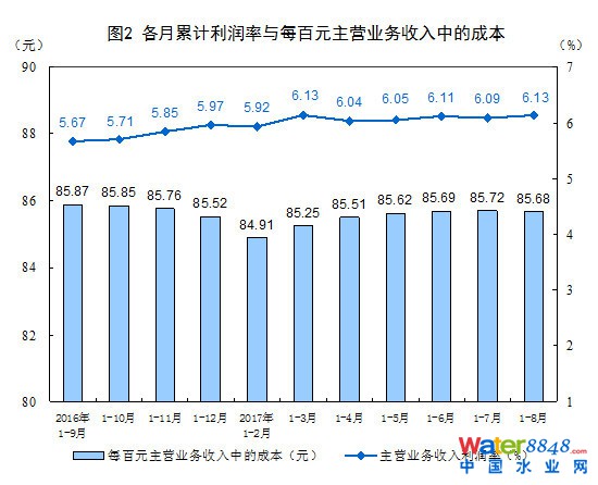 1-8月份,規(guī)模以上工業(yè)企業(yè)實現主營業(yè)務收入80.3萬億元,同比增長12.7%;發(fā)生主營業(yè)務成本68.8萬億元,增長12.5%;主營業(yè)務收入利潤率為6.13%,同比提高0.45個百分點。
