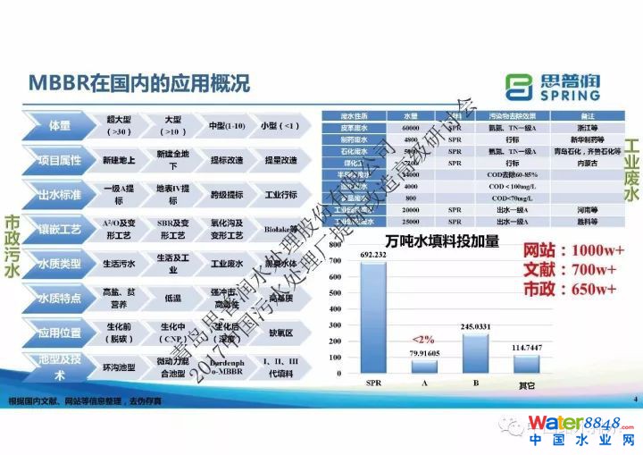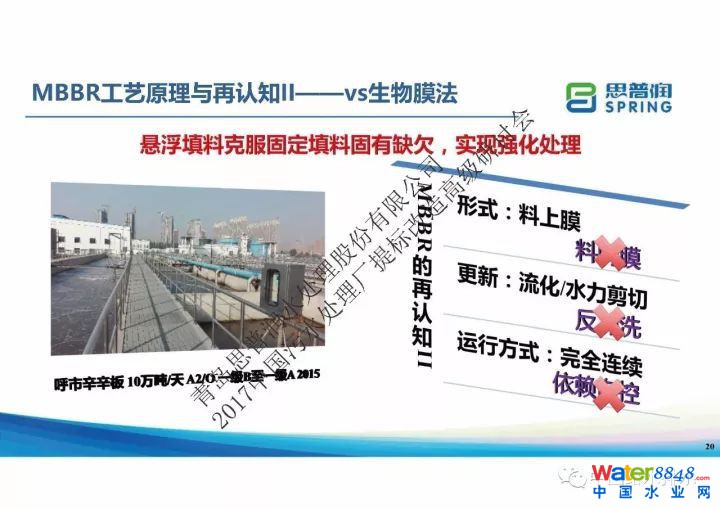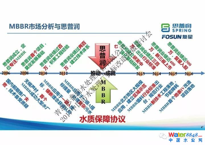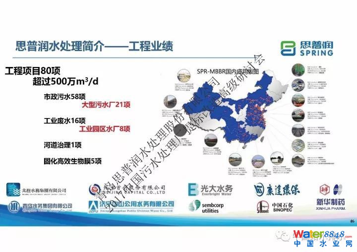 最后介紹一下我們公司,我們是2006年成立,注冊(cè)資金6900萬,新三板高新技術(shù)企業(yè)。專注MBBR的建設(shè)。工程業(yè)績現(xiàn)在是近500萬噸每天,思普潤從成立開始跟MBBR結(jié)下不解之緣,專注11年。我們很早時(shí)就采用水質(zhì)保障協(xié)議方式保證業(yè)主利益,就是說不達(dá)標(biāo)可以不給我們錢,甚至我們體量達(dá)到三百萬噸時(shí),公司都因?yàn)槲覀兊膮f(xié)議保證而在墊資建設(shè),這也是源于我們對(duì)自己工藝的信心。我們擁有完整的自主知識(shí)產(chǎn)權(quán),發(fā)明專利,獲取國家省市的眾多獎(jiǎng)項(xiàng)。我們李村河獲得水協(xié)張杰院士的審評(píng),參與國家865的專項(xiàng)課題技術(shù)發(fā)展。今天就介紹到這里,謝謝大家。