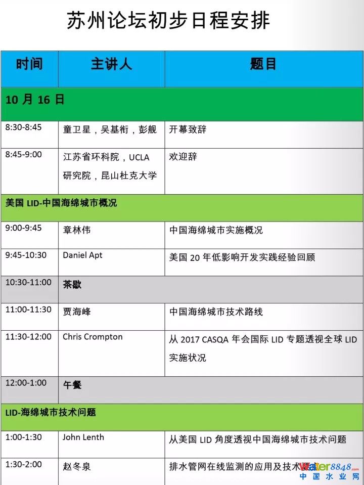 2017年洛杉磯環(huán)境論壇蘇州分論壇由南加州環(huán)保協(xié)會(SCCAEPA)和江蘇省環(huán)科院主辦,洛加大(蘇州)先進技術(shù)研究院和蘇州市清澤環(huán)境技術(shù)有限公司承辦,昆山杜克大學協(xié)辦,于10月16-17日在昆山杜克大學舉辦。2017年洛杉磯環(huán)境論壇蘇州分論壇專題為:海綿城市、智慧城市和流域管理。由二十多位國內(nèi)和歐美低影響開發(fā)和海綿城市專家主講,代表了業(yè)界國際領(lǐng)先水平。論壇期間我們將會提供中文同聲傳譯服務(wù)。
