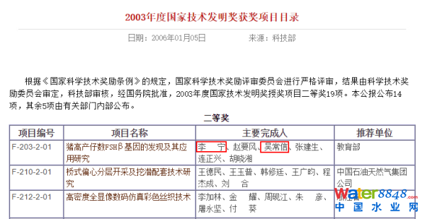 而且,在李寧之前獲獎的豬產子率基因相關項目中,吳常信也是其中的完成人之一。