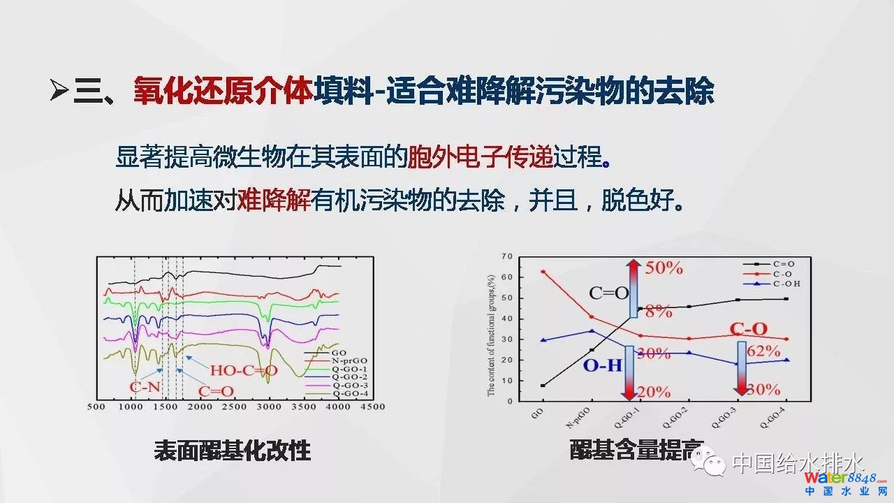 第三種是氧化還原介體填料,適合難降解有機污染物的去除?梢燥@著加速微生物在其表面的胞外電子傳遞過程。從而加速對難降解有機污染物的去除并且脫色效果好。