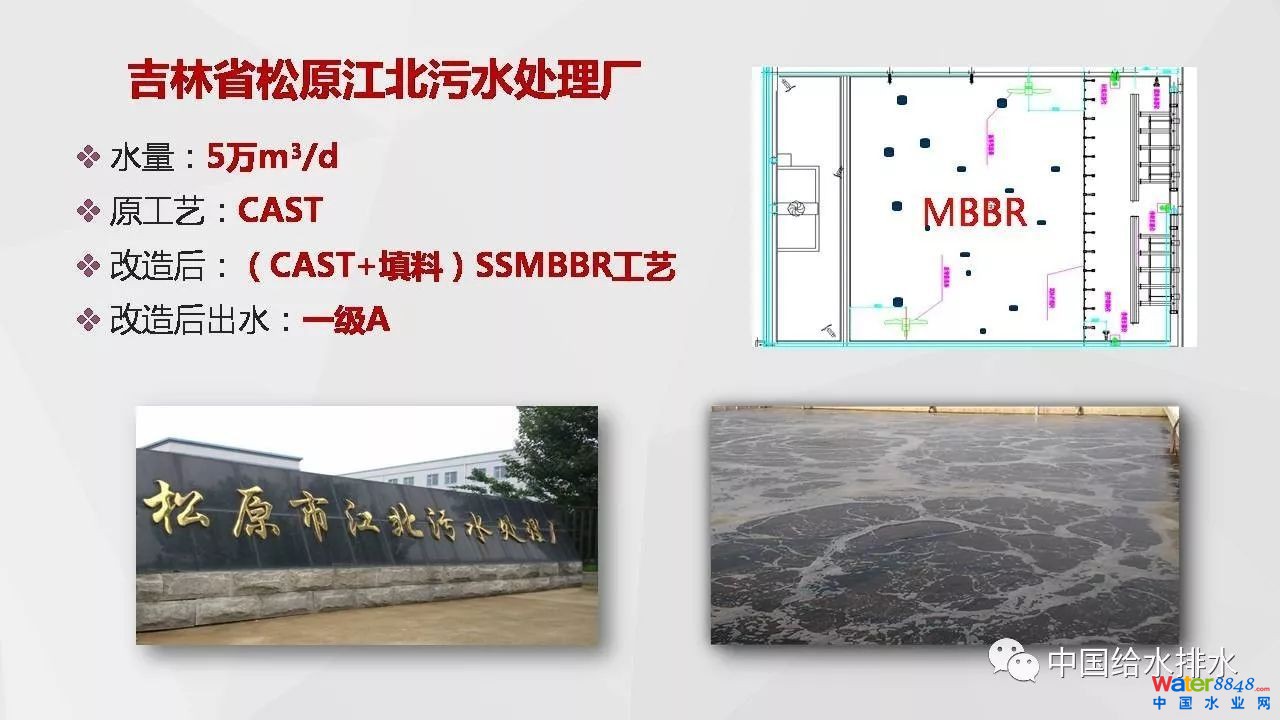 吉林松原污水處理廠,水量5萬噸,原工藝,CAST工藝,改造后,CAST池加填料SSMBBR工藝,改造后出水一級A,改造時在潷水器前設攔截網(wǎng),不讓填料流進潷水器里,改造非常簡單,工期短,投資少。改造后,冬季水溫小于8度時氨氮穩(wěn)定達標,并且不改變原來的運行模式。