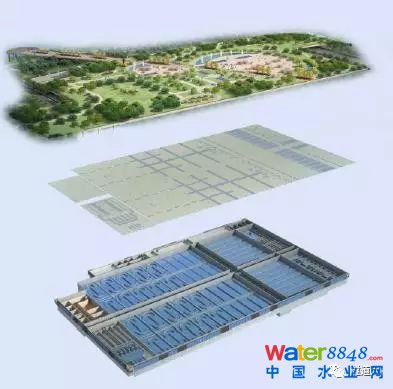 虹橋污水處理廠的所有工藝處理段均封閉在一體化的地下處理構(gòu)筑物內(nèi),開創(chuàng)性地構(gòu)建“地下再生水系統(tǒng)”和“地上再生水系統(tǒng)”的兩大系統(tǒng),解決污水處理與周圍環(huán)境協(xié)調(diào)的矛盾。