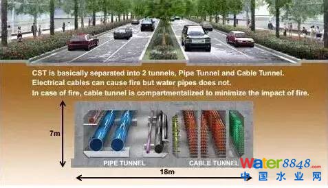 濱海地下管廊距地面3米,全長3.9千米,工程耗資8億新元(約合35.86億元人民幣)。