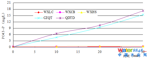 第二組數(shù)據(jù)改為二沉污泥過(guò)量加入優(yōu)質(zhì)碳源,測(cè)試強(qiáng)化厭氧釋磷效果,結(jié)果發(fā)現(xiàn)A、B、C廠仍沒(méi)有厭氧釋磷,而D、E廠厭氧釋磷現(xiàn)象明顯。