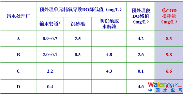 首先是預(yù)處理單元跌水復(fù)氧造成的碳源損耗問(wèn)題,相關(guān)論文發(fā)表在2017年8月《中國(guó)給水排水》雜志上。這個(gè)現(xiàn)象也是我們偶然發(fā)現(xiàn)的,根據(jù)我們最初的理解,污水經(jīng)管網(wǎng)并由集水井出來(lái)后,應(yīng)該是厭氧狀態(tài)的,也就是比較低的溶解氧才對(duì),結(jié)果調(diào)研測(cè)試的時(shí)候發(fā)現(xiàn)很多污水處理廠泵后水渠內(nèi)都有一定的溶解氧值,溯源后發(fā)現(xiàn)溶解氧主要來(lái)自于跌水點(diǎn)前后,跌水形成的復(fù)氧問(wèn)題非常明顯,每一次跌水基本上能形成3到4 mg/L,甚至更高的溶解氧增量。據(jù)此推算,大部分污水處理廠預(yù)處理單元跌水可能就要消耗6~ 8 mg/L,甚至更高的可生物降解COD,而這些都是我們比較珍貴的碳源。因?yàn)檫@里面消耗的COD可能是我們最優(yōu)質(zhì)的碳源。