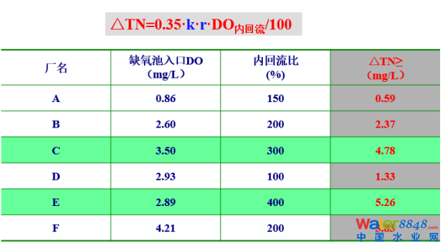 我們用這個(gè)模型對(duì)幾個(gè)污水處理廠進(jìn)行了簡(jiǎn)單的測(cè)算,也就會(huì)發(fā)現(xiàn)回流混合液的溶解氧會(huì)導(dǎo)致污水處理廠出現(xiàn)1~ 5 mg/L的硝酸鹽氮去除損失量。這個(gè)損失量對(duì)于部分污水處理廠是巨大的,因?yàn)楸仨毻都酉鄳?yīng)量的碳源,如果能很好的控制溶解氧問(wèn)題,部分污水處理廠就可以省掉碳源的問(wèn)題。