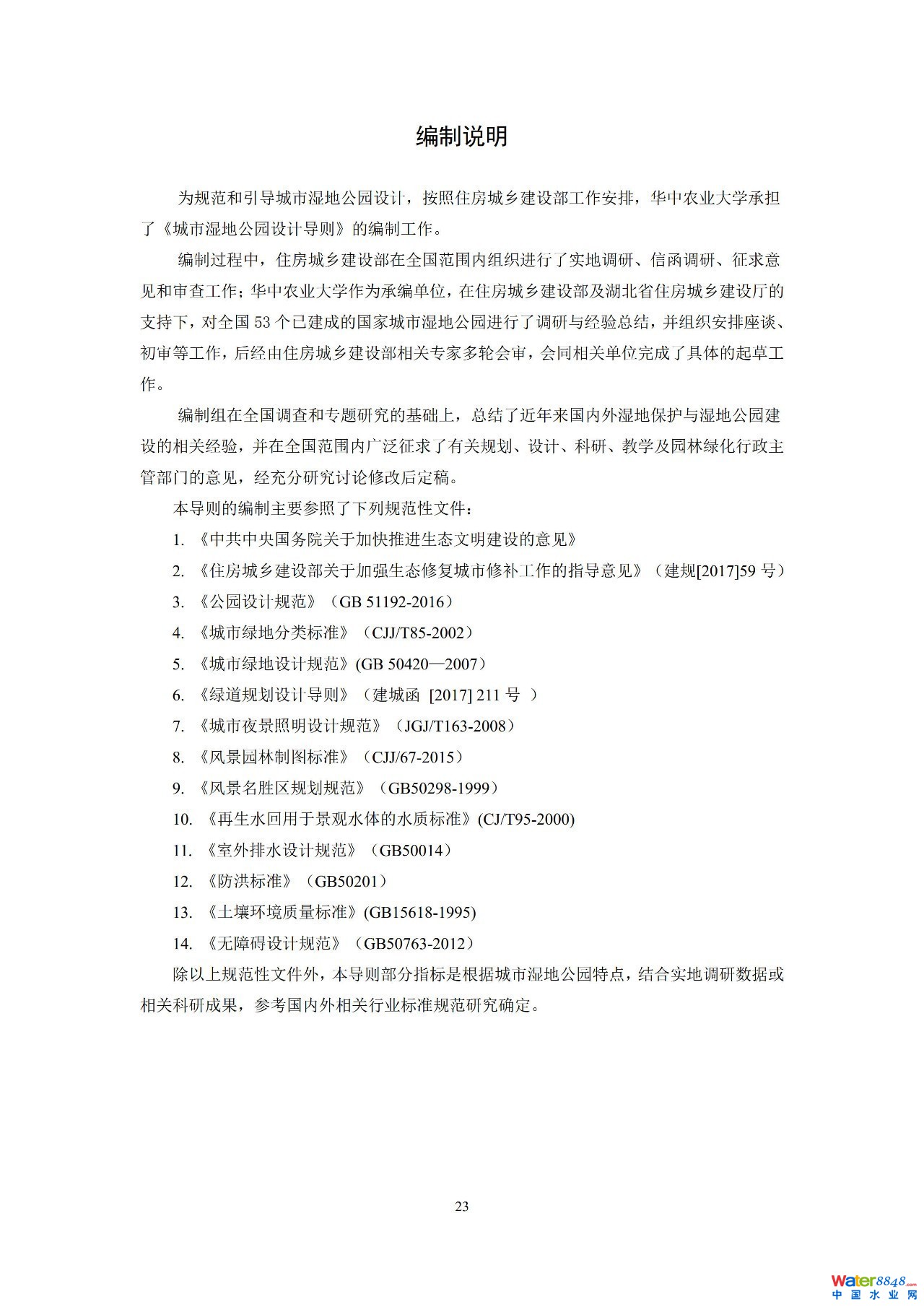 為進(jìn)一步貫徹落實(shí)《中共中央國(guó)務(wù)院關(guān)于加快推進(jìn)生態(tài)文明建設(shè)的意見》,促進(jìn)城市濕地資源的系統(tǒng)保護(hù)與合理利用,提升生態(tài)園林建設(shè)質(zhì)量, 保障城市濕地公園設(shè)計(jì)的科學(xué)性和規(guī)范性,更好地發(fā)揮城市濕地公園的綜合效益,在總結(jié)國(guó)內(nèi)外濕地保護(hù)與濕地公園科研和實(shí)踐經(jīng)驗(yàn)的基礎(chǔ)上,組織編制了本導(dǎo)則。