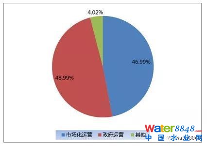 截止到2013年年底,我國(guó)采用市場(chǎng)化運(yùn)營(yíng)的城鎮(zhèn)污水處理廠占比47%,政府投資與運(yùn)營(yíng)的城鎮(zhèn)污水處理廠占比48.99%。我國(guó)近半城鎮(zhèn)污水處理廠市場(chǎng)化運(yùn)作。