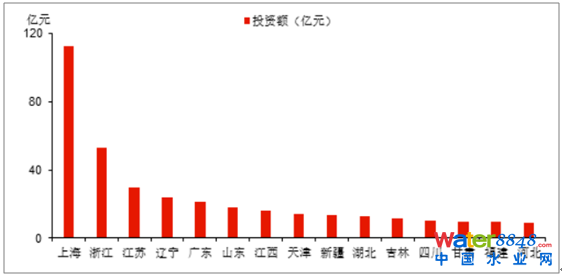 我國(guó)“十三五”城鎮(zhèn)污水處理能力規(guī)劃新增規(guī)模的投資額前列省市