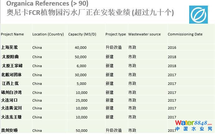 下面這個業(yè)績表是在中國區(qū)今年或者明年陸續(xù)開工做的項(xiàng)目,目前奧尼卡FCR污水廠的全球業(yè)績已經(jīng)超過90個,可以看到中國的很多項(xiàng)目正在集中建設(shè),所以現(xiàn)在接下來的兩三年之內(nèi),這些項(xiàng)目都會投入生產(chǎn),你會發(fā)現(xiàn)越來越多的花園一樣污水處理廠出現(xiàn)在您的周圍。