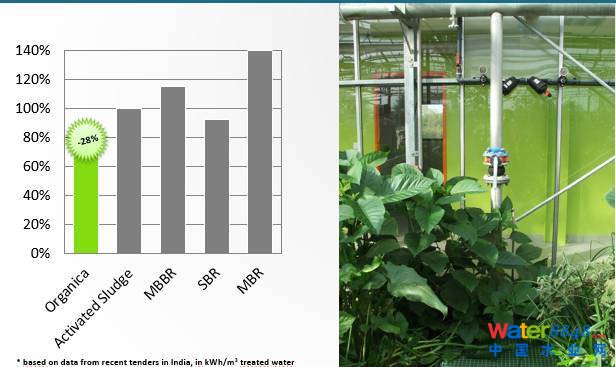吳大偉先生表示,奧尼卡是1998年在歐洲成立的一家污水技術(shù)處理公司,主要致力于用生物膜法處理市政污水,技術(shù)由過去的FBR(無人造根系)升級到目前的FCR(有人造根系),是一種固定床生物膜法,比傳統(tǒng)活性污泥法占地小一半以上,運(yùn)行成本低10%以上,污泥減量25%以上,是一種環(huán)境友好的花園式污水處理廠。