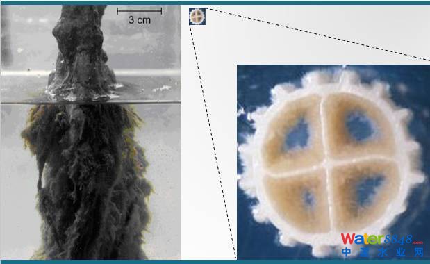 這是一個載體對比,可以看到植物根系成膜是非常是疏松,右邊這個塑料載體成膜就比較薄。根系膜蓬松呈現(xiàn)漂浮狀態(tài),利于氧氣的滲透傳遞,而塑料成膜比較薄切致密,因此氧氣傳遞的效率大大降低。