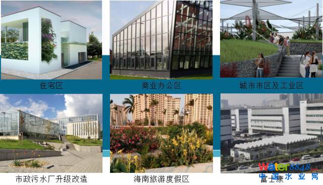 下一張圖片可以看到我們的FCR花園式污水處理廠的廣泛的應(yīng)用領(lǐng)域,學(xué)校、工廠、市中心,交通樞紐等等,可以建在任何大家想要建的地方,由于有獨(dú)特的溫室結(jié)構(gòu),使居民和百姓對這個污水處理廠心里反感程度非常低,所以污水處理廠緩沖區(qū)非常小,對周圍居民的影響就非常小。
