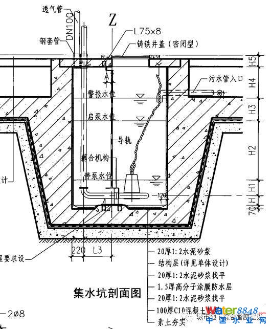 為了保證防滲漏要求,集水坑內(nèi)壁應(yīng)涂刷防水材料。
