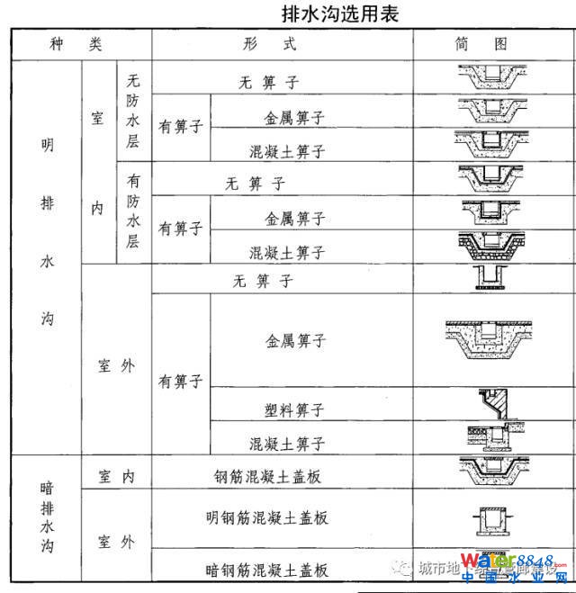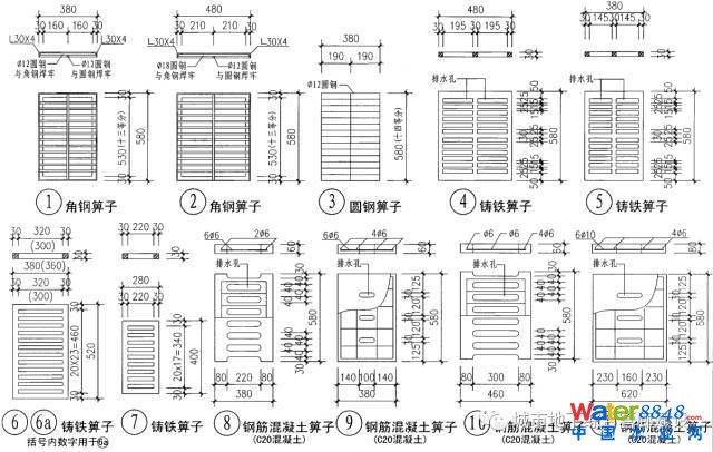 在排水溝和集水坑頂部也可以加裝蓋板。蓋板一般有混凝土材質(zhì)和金屬材質(zhì)等,具體請看下圖: