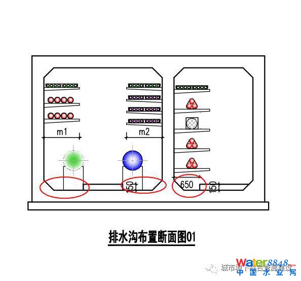 下圖是管廊的斷面圖,紅色部分為排水溝