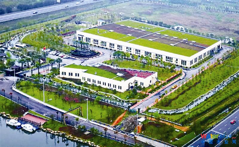 市南片污水處理廠位于高速“溫州南”出入口附近綠地。在廠區(qū),除道路以外,基本都有綠化覆蓋,望過去滿眼綠色。這里有桂花、玉蘭和果樹,主廠房和綜合樓頂上還種植了綠植作為“頂蓋”。