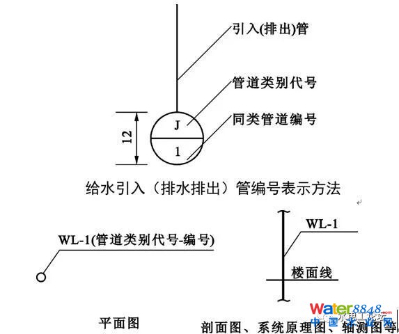 (1)當(dāng)建筑物的給水引入管或排水排出管的數(shù)量超過(guò)1根時(shí),宜進(jìn)行編號(hào)。
