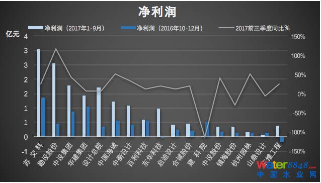 注:數(shù)據(jù)來源公司2016年報(bào)和2017三季報(bào),由于城建設(shè)計(jì)未披露三季報(bào),其最近4個(gè)季度的凈利潤并沒有反映在圖中,本文城建設(shè)計(jì)凈利潤數(shù)據(jù)的統(tǒng)計(jì)區(qū)間均為2016年6月至2017年6月。