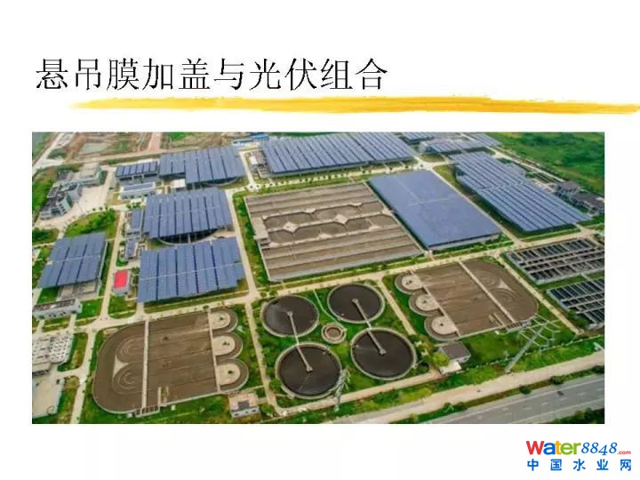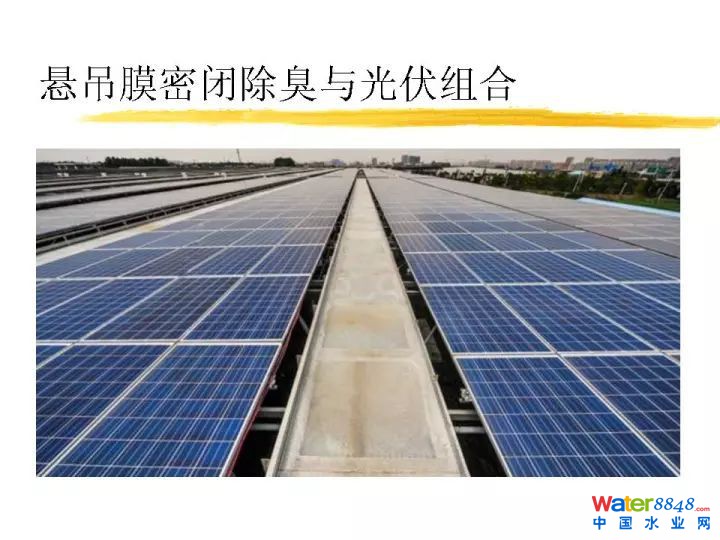 懸吊膜密閉技術(shù)可以很好跟光伏技術(shù)結(jié)合起來。這個(gè)特點(diǎn)是沒有起高,平膜布置,方便設(shè)置光伏板,臭氣密閉,不會(huì)腐蝕光伏板和支架。膜可以上人,方便維護(hù)檢修。