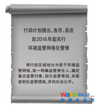 一是劃分監(jiān)管網(wǎng)格。針對(duì)違法排污屢禁不止、部分區(qū)域排污不降反增、部分小溝小汊污染加重等問(wèn)題,必須進(jìn)一步加強(qiáng)環(huán)境監(jiān)管!端畻l》提出,各市、縣應(yīng)自2016年起實(shí)行環(huán)境監(jiān)管網(wǎng)格化管理,即將行政區(qū)域劃分為若干環(huán)境監(jiān)管網(wǎng)格,逐一明確監(jiān)管責(zé)任人,確定重點(diǎn)監(jiān)管對(duì)象,劃分監(jiān)管等級(jí),采取差別化監(jiān)管措施,并向社會(huì)公開(kāi)。