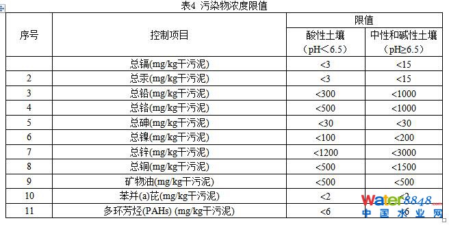 污泥產物農用時,根據施用場所的土壤pH值,污泥產物中污染物的濃度限值。