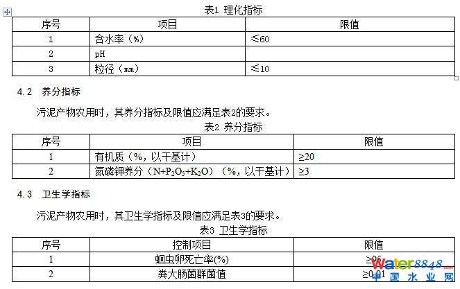 污泥產物農用時,其理化指標及限值應滿足表1的要求。
