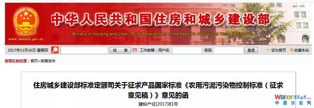 住房城鄉(xiāng)建設部標準定額司關于征求產品國家標準《農用污泥污染物控制標準(征求意見稿)》意見的函