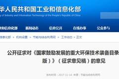 《國(guó)家鼓勵(lì)發(fā)展的重大環(huán)保技術(shù)裝備目錄(2017年版)》(征求意見稿)日前,工信部印發(fā)《國(guó)家鼓勵(lì)發(fā)展的重大環(huán)保技術(shù)裝備目錄(2017年版)》(...