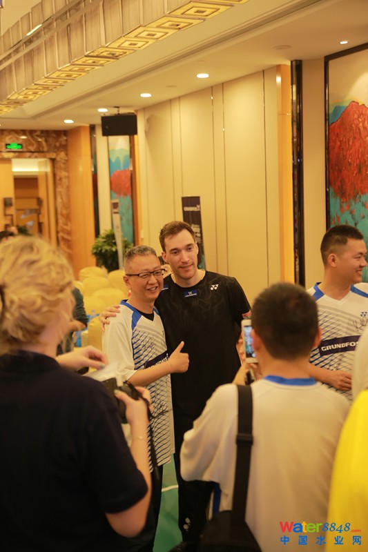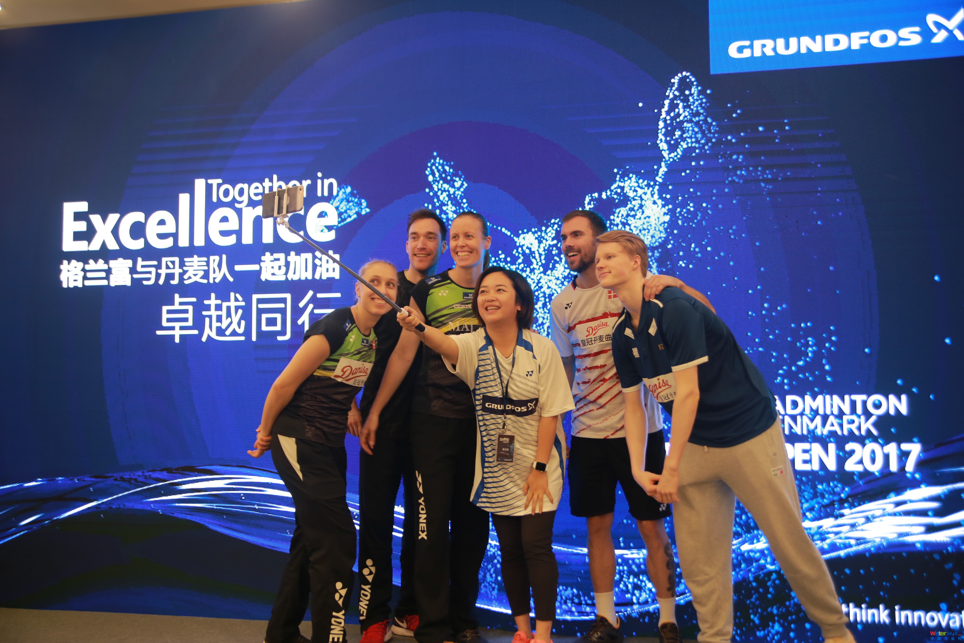 在之后的活動(dòng)中,VIP客戶們獲得機(jī)會(huì)與格蘭富贊助的丹麥羽毛球國(guó)家隊(duì)球員進(jìn)行了了有趣的互動(dòng)。這些格蘭富贊助的丹麥球員包括:安德斯·安東森(Anders Antonsen)、卡米拉·呂特·尤爾(Kamilla Rytter-Juhl)、克里斯汀娜·佩蒂森(Christinna Pedersen)、尼克拉斯·諾爾(Niclas Nøhr)和薩拉·蒂格森(Sara Thygesen)。大家可以隨意問(wèn)問(wèn)題,范圍不限。于是有客戶關(guān)心丹麥羽毛球的訓(xùn)練選拔機(jī)制,有的想知道他們對(duì)林丹、安塞龍等球員的看法,還有的問(wèn)約根森身上的刺青又什么含義……之后又趕緊要了明星球員的簽名和合影,有的還一起玩起了自拍,不亦樂(lè)乎!