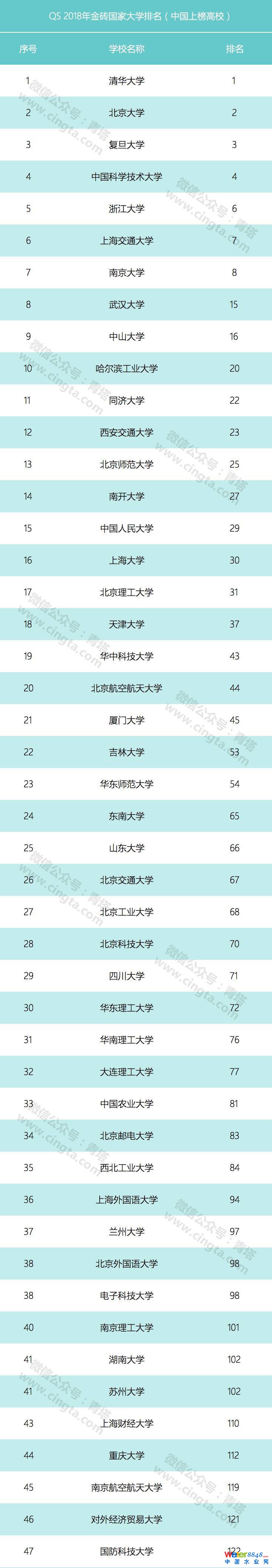2017年11月22日,QS全球教育集團(tuán)發(fā)布了QS 2018金磚國(guó)家大學(xué)排名,排名旨在深入分析世界新興經(jīng)濟(jì)體教育的全球競(jìng)爭(zhēng)力,其中94所中國(guó)大學(xué)進(jìn)入金磚國(guó)家前300名,而且前十名中有7所中國(guó)高校。