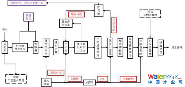 紅沙污水處理二廠為半地下式花園式污水處理廠,其辦公、中控等利用紅沙污水處理一廠現(xiàn)有用房和設(shè)施設(shè)備。二廠污水處理設(shè)計規(guī)模為9.5萬m³/d;污水處理工藝采用“多模式A2O+高效沉淀池+纖維轉(zhuǎn)盤濾池+接觸消毒”,出水與一廠出水匯合后排海,出水水質(zhì)為一級A標(biāo)準(zhǔn)。