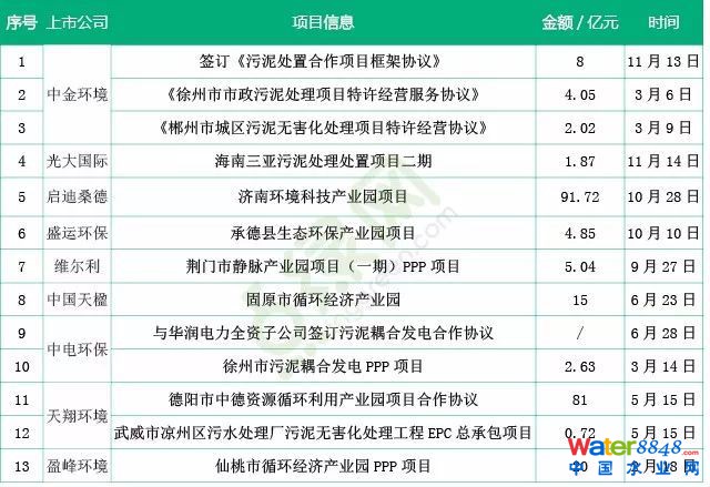 此外,還有光大國際、桑德集團、維爾利、盛運環(huán)保、中國天楹等固廢環(huán)保企業(yè)通過拿簽署產(chǎn)業(yè)園項目合作協(xié)議,實現(xiàn)包括污泥處置在內(nèi)的固體廢物無害化、資源化、一體化處置進程。例如,盛運環(huán)保產(chǎn)業(yè)園項目中污泥處置不僅包括污水處理廠污泥還包括河道污泥等,維爾利的荊門市靜脈產(chǎn)業(yè)園項目污泥處理規(guī)模為245噸/日。