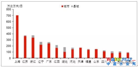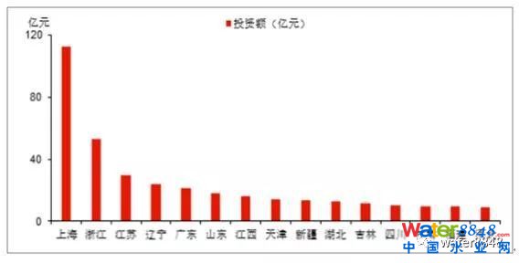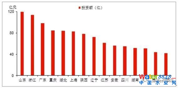 我國“十三五”城鎮(zhèn)污水處理能力規(guī)劃新增規(guī)模的投資額前列省市