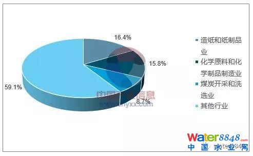 工業(yè)廢水排放行業(yè)分布較為集中。目前而言電力、石化、紡織、造紙和冶金領(lǐng)域是工業(yè)水處理的主要下游市場。2015年底,造紙和紙制品業(yè)、化學(xué)原料及化學(xué)制品制造業(yè)、紡織業(yè)、煤炭開采和洗選業(yè)的工業(yè)廢水排放占比達(dá)47.1%。由于相關(guān)工業(yè)企業(yè)分布較為分散且監(jiān)管體系建設(shè)不到位,政府監(jiān)管和技改提標(biāo)兩條路包抄,才能遏制工業(yè)不達(dá)標(biāo)廢水偷排漏排造成的嚴(yán)重污染。