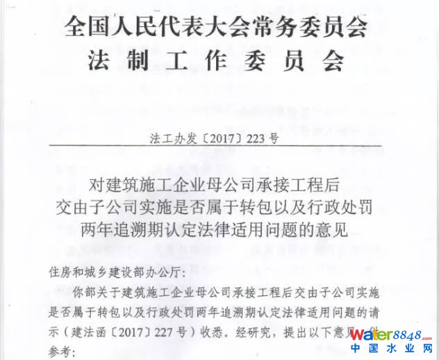 重磅!母公司中標(biāo)子公司施工屬于轉(zhuǎn)包?全國(guó)人大法工委復(fù)函住建部給出意見!
