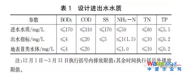 本工程為北京某鎮(zhèn)級(jí)新建污水處理廠,設(shè)計(jì)規(guī)模為3000m3/d。設(shè)計(jì)進(jìn)水水質(zhì)參照臨近區(qū)域同等市政污水處理廠,設(shè)計(jì)出水水質(zhì)要求同時(shí)達(dá)到《城市污水再生利用 城市雜用水水質(zhì)》(GB 18920-2002)及北京市《城鎮(zhèn)污水處理廠水污染物排放標(biāo)準(zhǔn)》(DB 11/890-2012)A標(biāo)準(zhǔn)。綜合上述標(biāo)準(zhǔn),本工程設(shè)計(jì)進(jìn)出水水質(zhì)要求見(jiàn)表1。